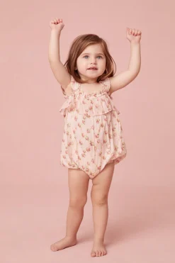 Forever sweet in our Nadiana Pinafore. Our little loves stun in this dreamy piece with our favorite new dainty floral print and pretty ruffle detailing. Match your little one with our Sunshine Mini Cotton Dress.</div