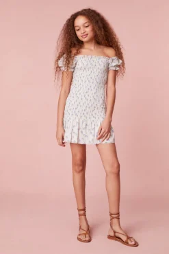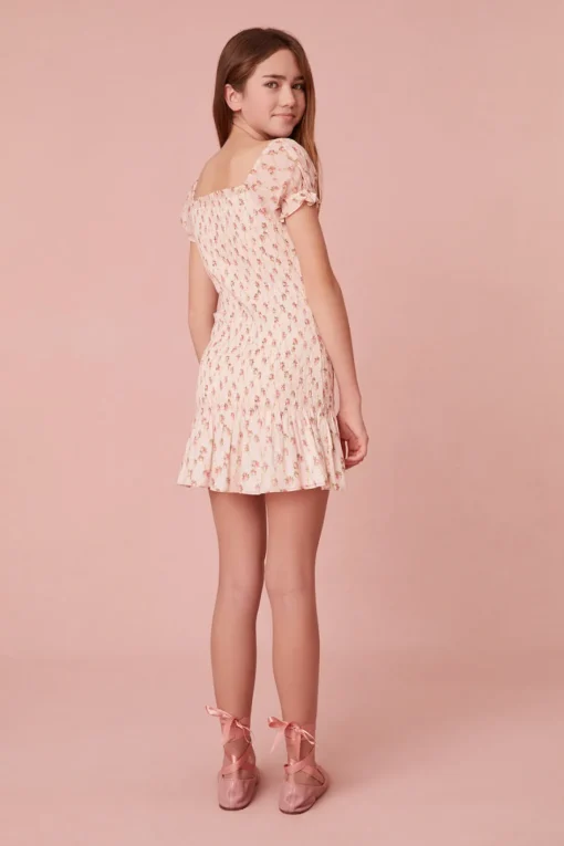 Our little loves are ready for sunshine in the Mosa Dress. This sweet dress features our favorite new dainty floral print of the season, short puff sleeves, a smocked bodice, and an airy skirt.</div