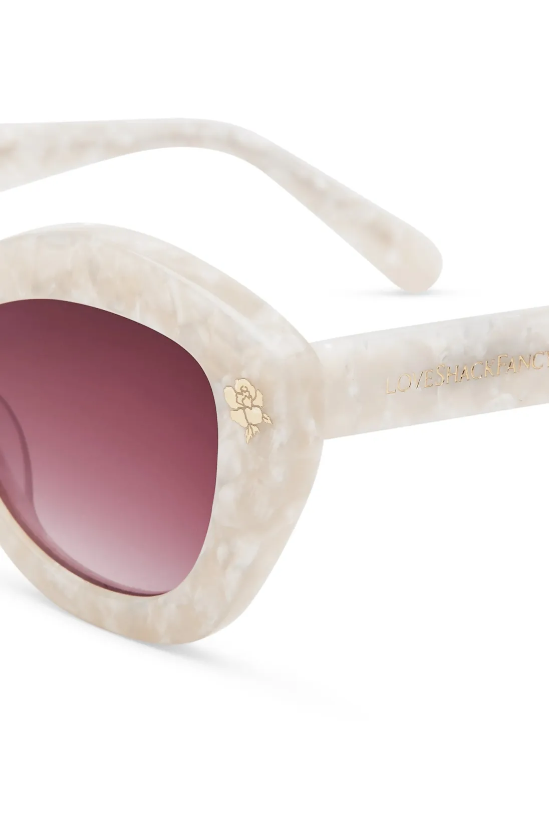 Having a dream girl moment in our Hessel sunglasses. These modern, round cat eye frames add a glossy finish to any look. Wear them with our Didi One-Piece Halter Swimsuit.</div