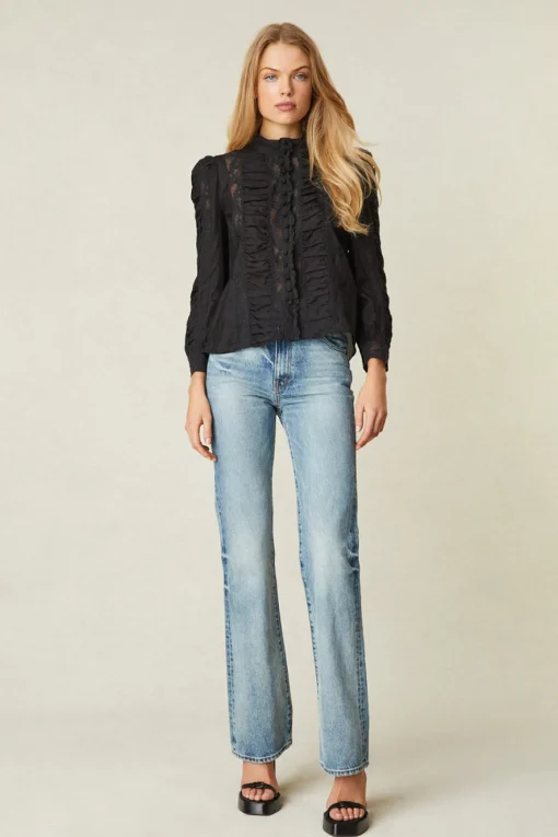 Meet this vintage inspired piece, the Jacque Top. This top is perfectly lightweight and soft. Starting with the high neck lace details to the puffed sleeve, this is the dreamiest top. Designed in a washed silk habotai, this top drapes perfectly. This top features a custom and delicate Victorian lace that is added throughout the top.