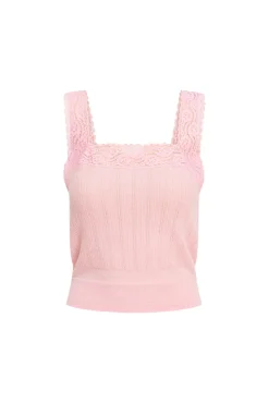 Loving on the Lush Tank. Feminine and flirty, this pretty top is designed from a lightweight, merino wool with a ribbed pointelle stitch throughout the body. The top is detailed with matching lace around the neckline and the straps. Pairs well with a dreamy mini or your favorite pair jeans.</div