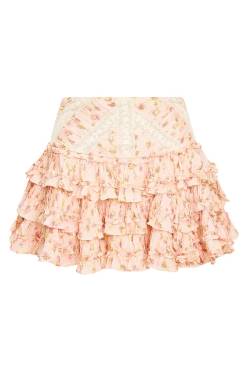 So in love with the Roebeina Skirt. This flirty mini features our new vintage-inspired, ditsy floral print all over. The skirt has a flattering fixed waist with pleated ruffle tiers giving it a playful flair. Shirring details and laces are woven throughout for added detail. The piece is finished with a side seam zipper for functionality.</div