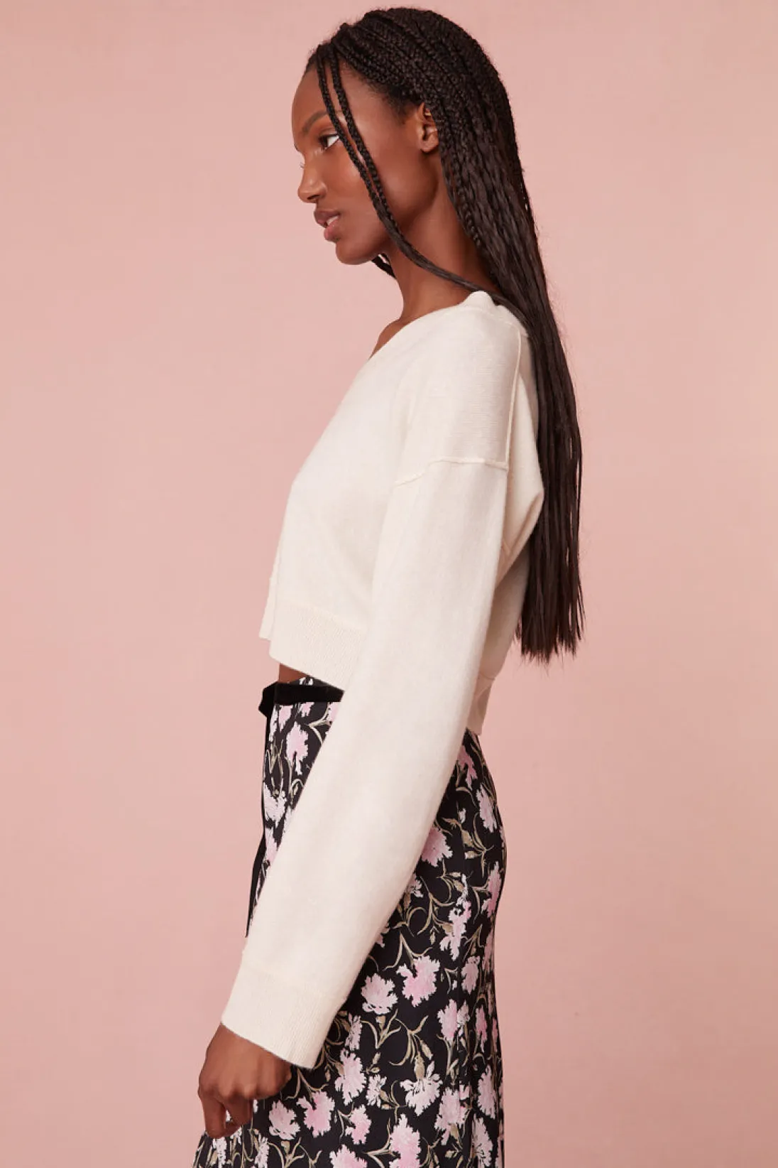 The Sansa Pullover is a must-have of the season. Easy and chic, this lightweight, slightly cropped knit is designed from a cashmere fabric for a super soft feel with rib linking near the seams for a stunning finish. The piece is sealed with a sweet self top-applied bow on the back. Wear alone or over a dress for a chic layering moment.</div