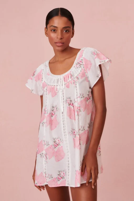 The Sashi Dress swoons with our pretty pink bow print all over. This airy nightg…