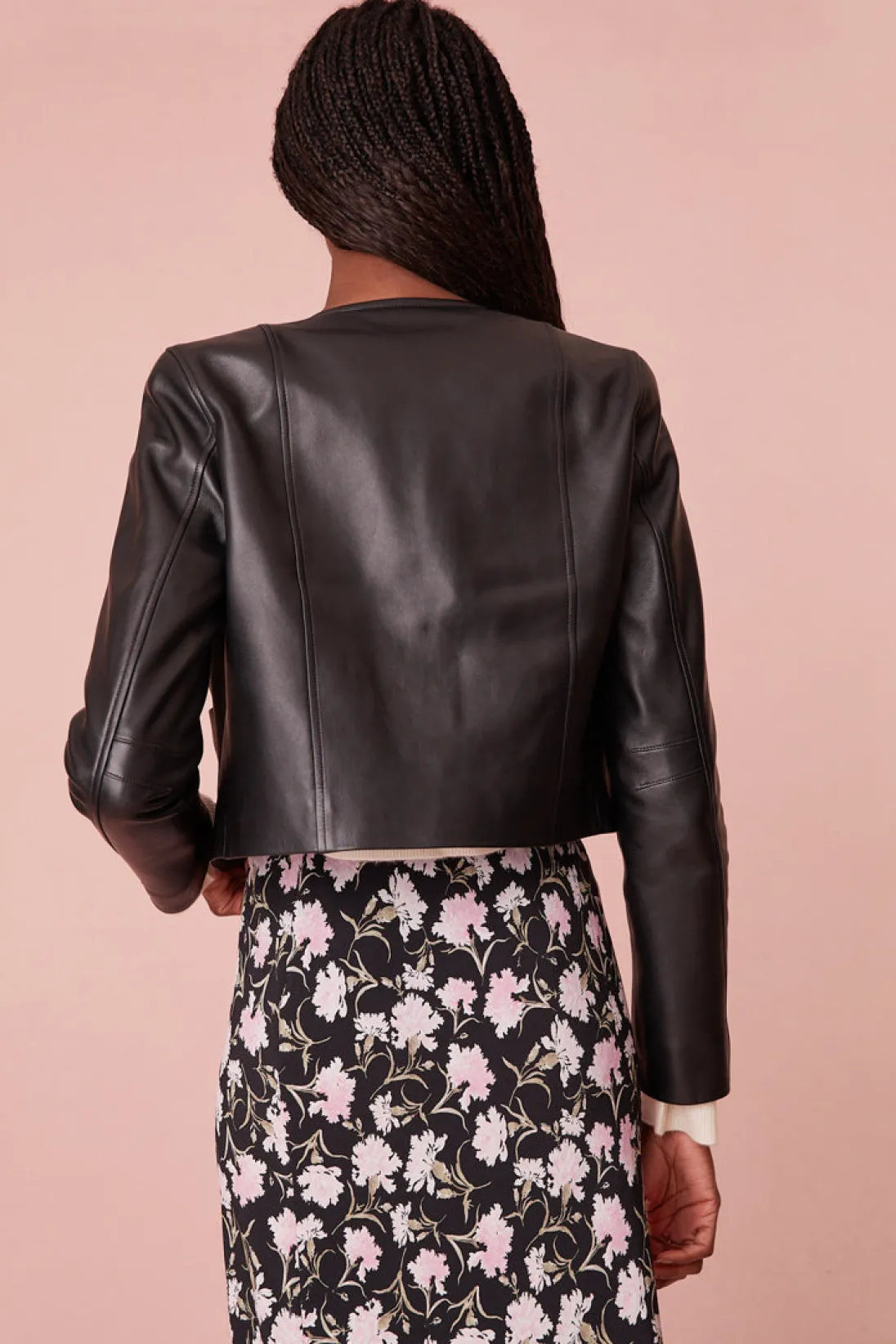Classic and chic in all the right ways, the Xander Jacket makes its debut. This must-have layer is designed from a supple, soft genuine leather and has an easy, cropped, straight fit for a flattering silhouette, functional pockets at the chest, and gold buttons with our custom logo down center front. Pair this piece over your favorite mini dress or with a pair of vintage denim for a full look.</div