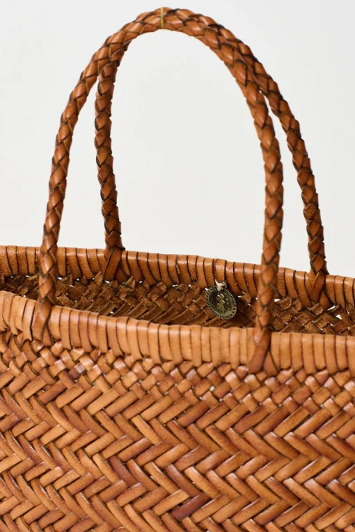 Named after the sunny Massachusetts island, the Nantucket bag is one of Dragon Diffusion’s most popular styles. Handwoven in a tight knit from soft buffalo calf leather and complete with braided handles, this roomy, unlined, open-top tote will be the perfect accompaniment to any of your favorite LoveShackFancy Dresses.