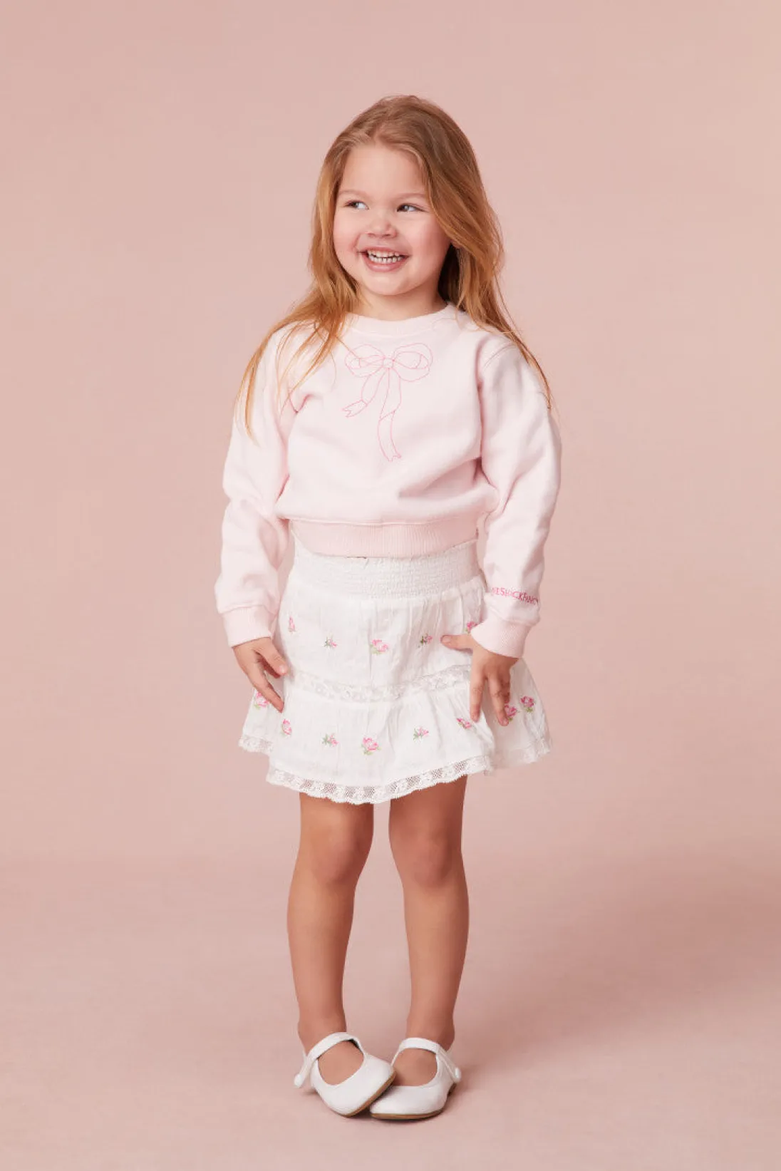 Cozy and cute in the Oaklee Pullover. This sweet, pretty in pink layer features our favorite bow print.