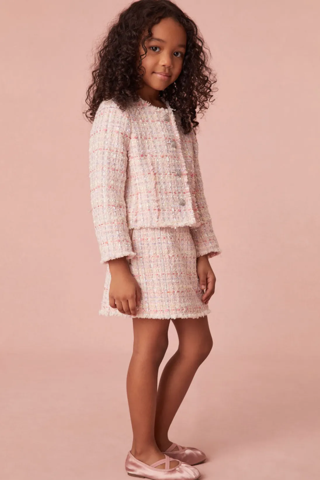 Introducing the Roelle Skirt. This pretty piece stuns with a gorgeous textured tweed fabric with a shimmering lurex thread throughout. Pair with the Medine Jacket for a full look.</div