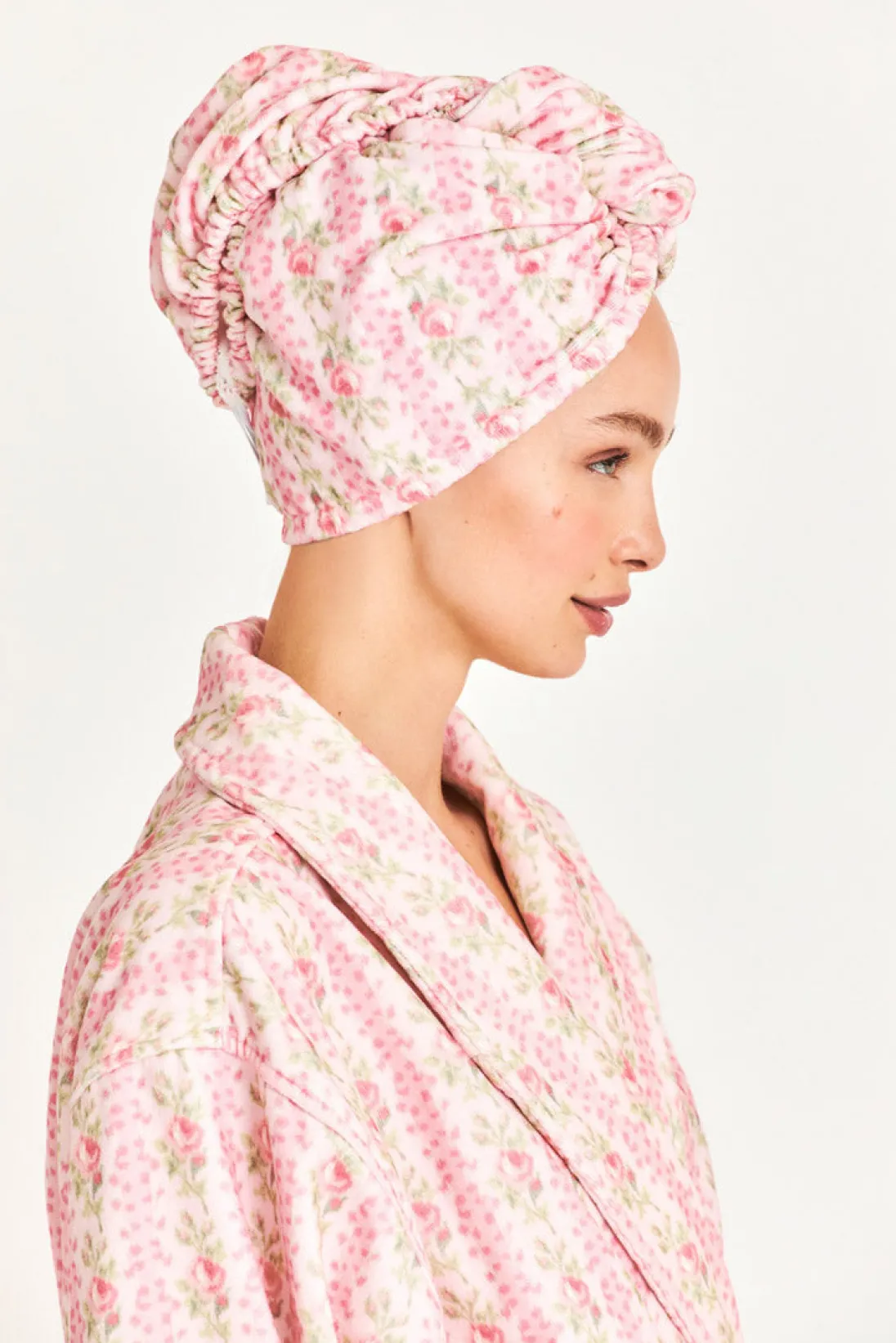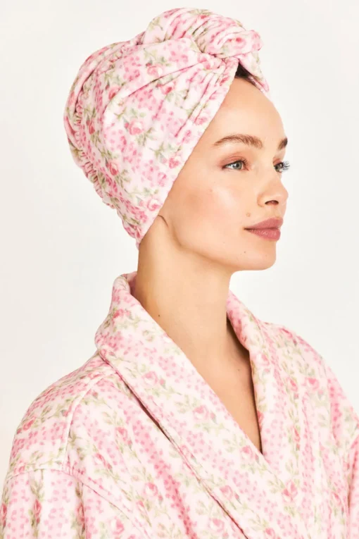 Wrap your hair in love (and florals) with our Forever in Love hair wrap. Ultra-soft, this pretty in pink wrap arrives in 100% cotton with our favorite rose print. Pair with our Indie Robe for a complete look.