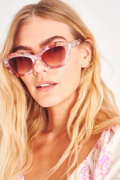 Having a dream girl moment in our Hessel sunglasses. These modern, round cat eye frames add a glossy finish to any look. Wear them with our Didi One-Piece Halter Swimsuit.</div