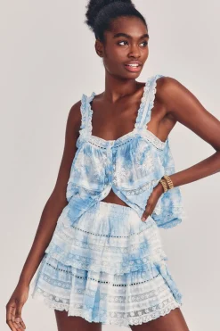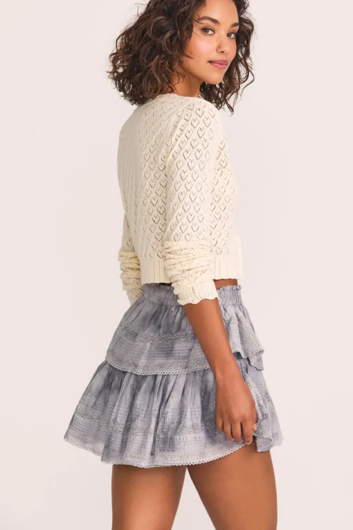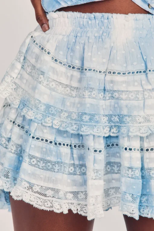Our best selling Ruffle Mini Skirt returns for the season. She features intricate inset lace trims and allover pintuck details. The elasticated waistband and double lining offers flexibility in comfort and styling. Tiered ruffles exude effortless femininity. The mini is finished with a frayed, raw hem for added playfulness.