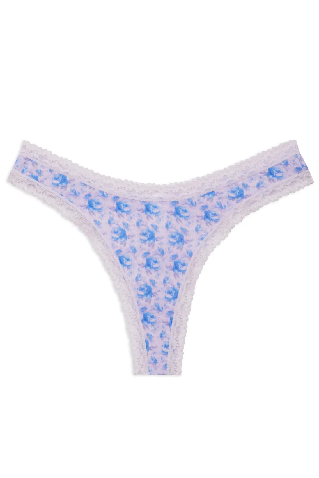 Exceptionally soft and breathable underwear, our Jair Blue Crimson Dame Thong Box emphasizes comfort and effortless beauty. Arriving in a set of four designed from a sustainable fabric, each thong features a romantic, vibrant floral print with vintage-inspired lace trim.</div