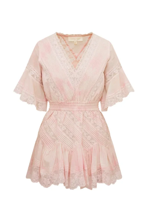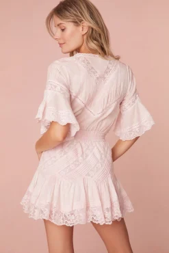So in love with the Calamina Dress. This Vicotrian-inspired mini features delicate laces and pintuck details all over. Perfect for spring, this sweet dress begins with short flowy sleeves, a v-neckline that falls to an elasticated waistband for easy wear which releases into an airy skirt.