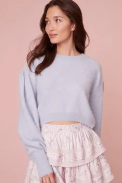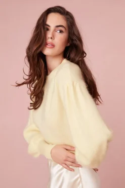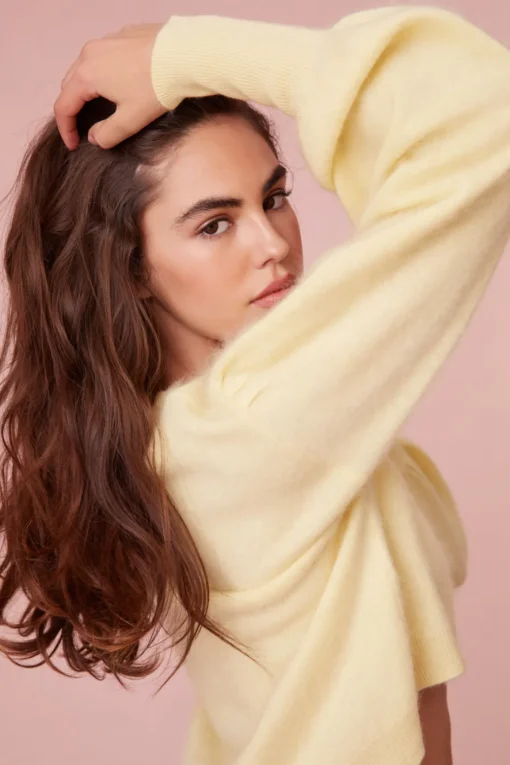 Pretty in pink in the Candela Pullover – a luxuriously soft addition to your wardrobe crafted from brushed cozy cashmere. This crop pullover features an elliptical shape, with a shorter front and a longer back, creating a modern and dynamic silhouette. The Candela Pullover is designed with a puff sleeve for added elegance. The crew neck adds a classic touch, creating a perfect balance of timeless and contemporary style. The pullover is intricately crafted in a jersey stitch, enhancing its overall texture and comfort.
