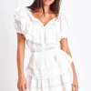 With delicate inset lace trims and thoughtful pintuck details, our vintage-inspired Liv Dress is pure romance. Puff sleeves and a double-tiered yoke top are a nod to Victorian lingerie, and the ruffled miniskirt is ultra-feminine. Front ties finish the scoop neckline, and the cinched elastic waist is flattering and comfortable. Accessorize with our LoveShackFancy x Lova Flower Hoop Earrings.