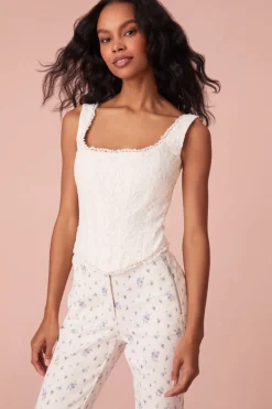 Everyone’s favorite Lorelai Bustier returns for the season reimagined with an effortlessly sexy lace detailing all over. Crafted from a silky satin fabric, the bustier top is designed for romance. The boning and corseting details provide a supportive and figure-flattering fit, ensuring you feel both confident and comfortable. With an open square neck, and a V-shaped base, the bustier adds a touch of drama to any look. This piece is finished with a back zipper.</div