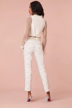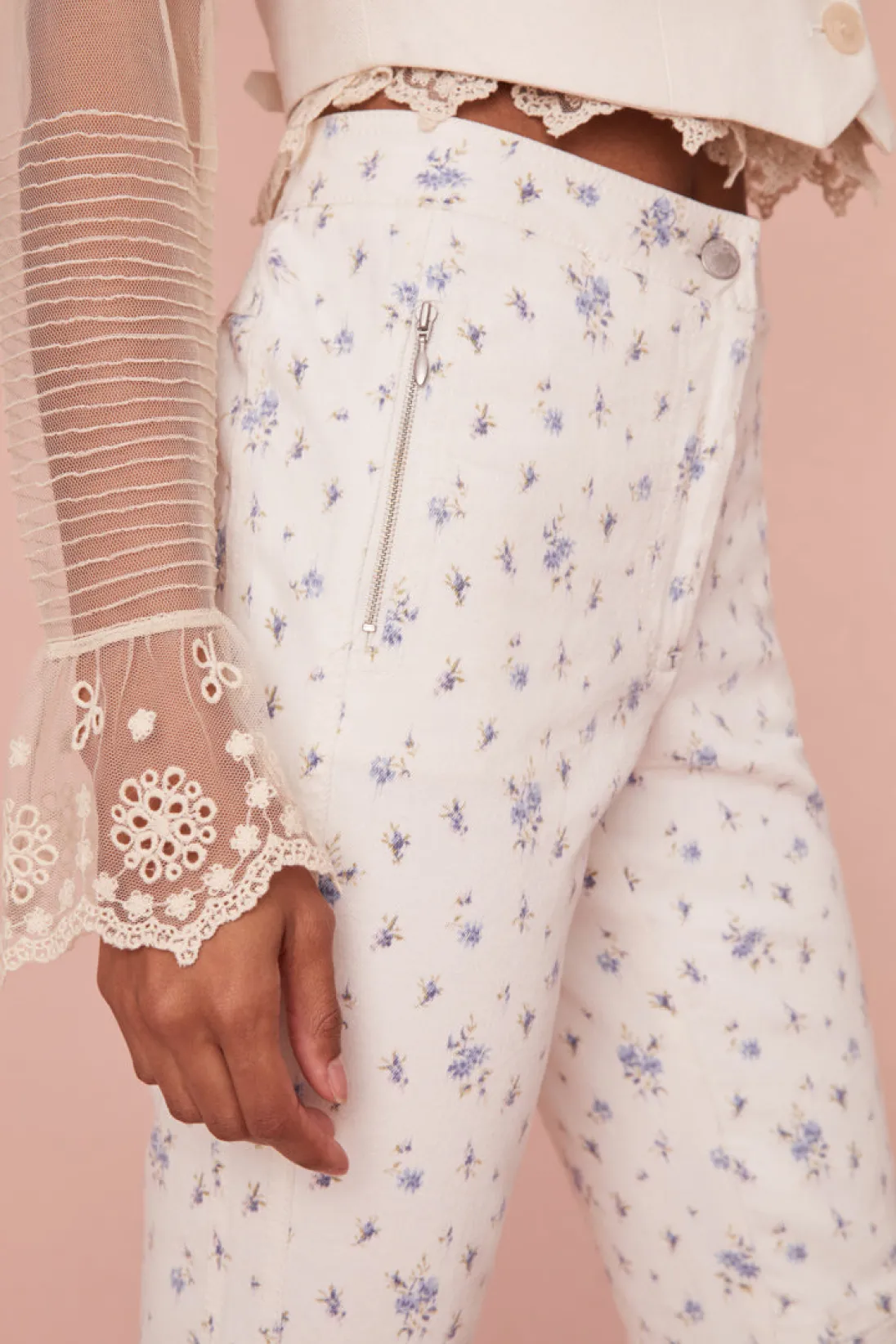 Meet our new favorite spring denim, the Noyer Jean. These sporty jeans arrive with our dainty floral print of the season with a comfortable stretch fabric. The straight leg pants feature ankle length, zipper details at the sides, a moto-inspired knee patch detail, and a mid to low waistline.</div