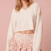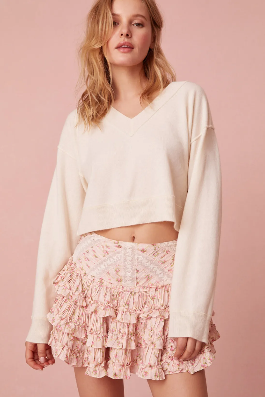 The Sansa Pullover is a must-have of the season. Easy and chic, this lightweight, slightly cropped knit is designed from a cashmere fabric for a super soft feel with rib linking near the seams for a stunning finish. The piece is sealed with a sweet self top-applied bow on the back. Wear alone or over a dress for a chic layering moment.</div