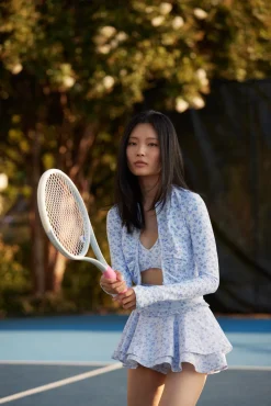 Living in the new Sindra Jacket. Designed for the girls on the go, this active layer is lightweight and ideal for cool days outside. The jacket features our dainty floral print, a ruched center for a flattering fit, a center-front zipper, a slightly cropped hem, and long sleeves.