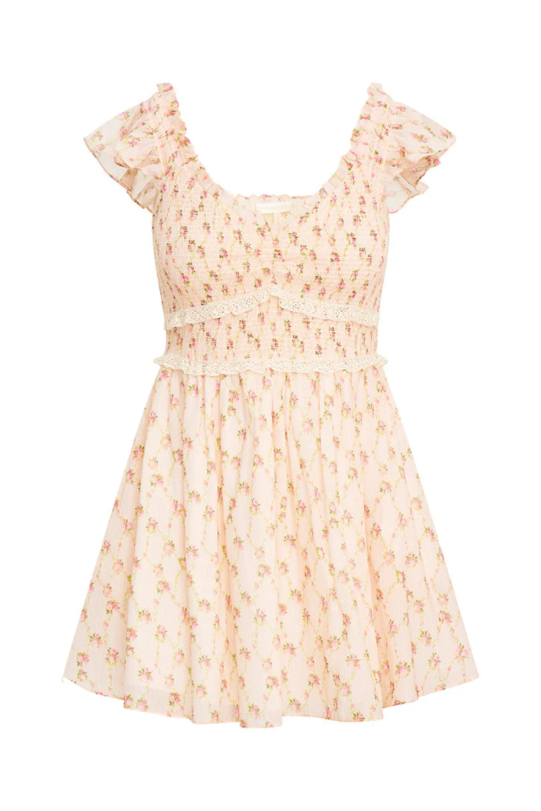 So in love with the Sunshine Dress. This sweet mini is ready for spring designed with a dainty floral printed cotton voile fabric. The dress features short flutter sleeves, a sweetheart neckline, and a ruched bodice that descends to an airy skirt. Have your little one match you with our Baby Nadiana Ruffle Pinafore.</div