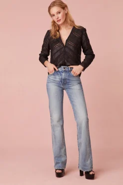 Introducing the Tandra Top. This pretty, Victorian-inspired piece is designed with a luxe, viscose habotai fabric with beautiful, vintage-inspired laces and textural shirring details all over. A new iteration on our best-selling Jacques Top, the Tandra features a v-neckline and diagonal laces for added texture detailing. Effortlessly sexy, the top pairs well with your favorite mini or vintage jeans.</div